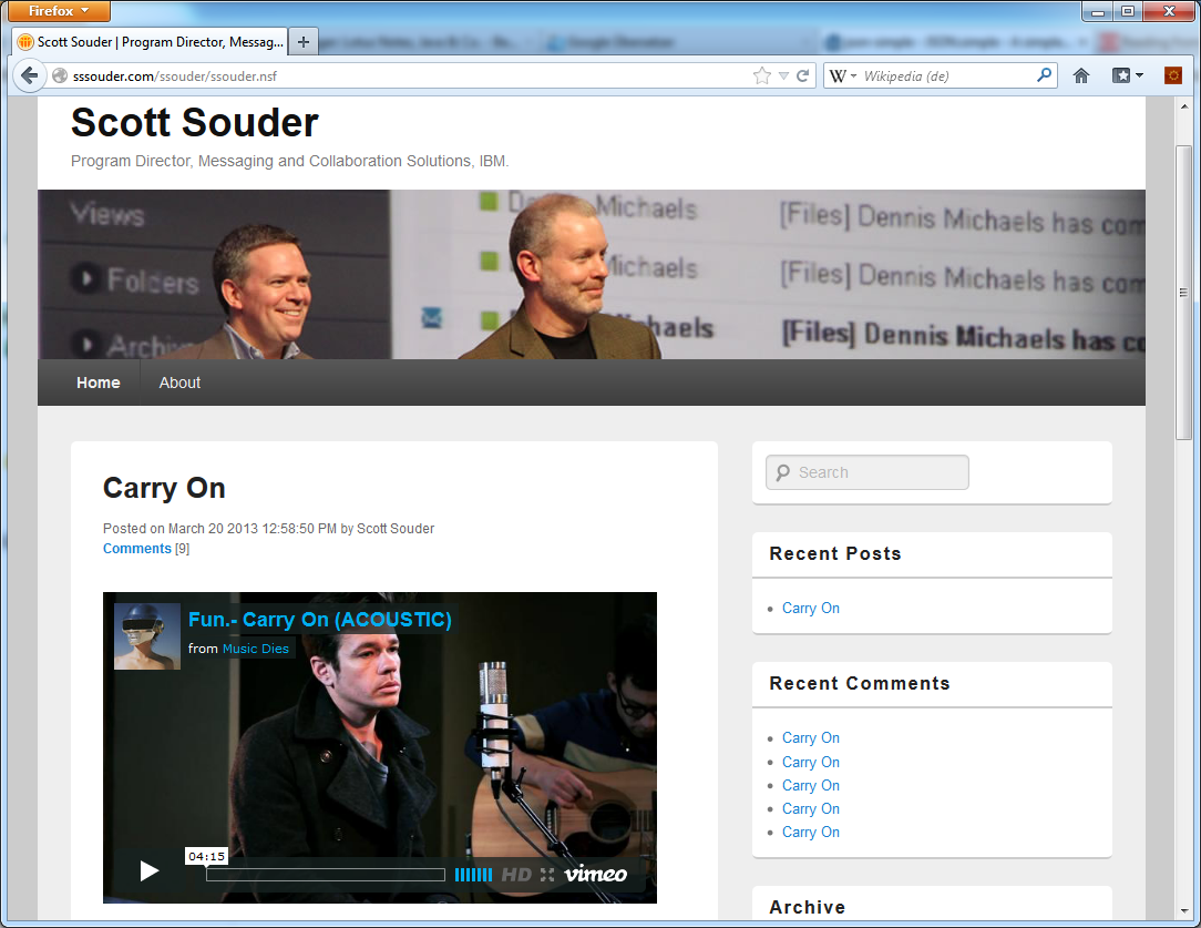 Scott Souder the successor of ed brill in the IBM Messaging and Collaboration division has started his new blog on sssouder.com. I hope his blog will get as informative as the blog of ed brill which was one of the most valuable information source in the IBM collaboration bubble. So good luck to scott souder in his new role and with his new blog.