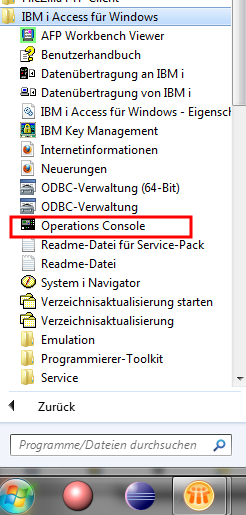 Now you can try your new LAN console on your local workstation. Start the "Operations Console" from the i Access start menu.