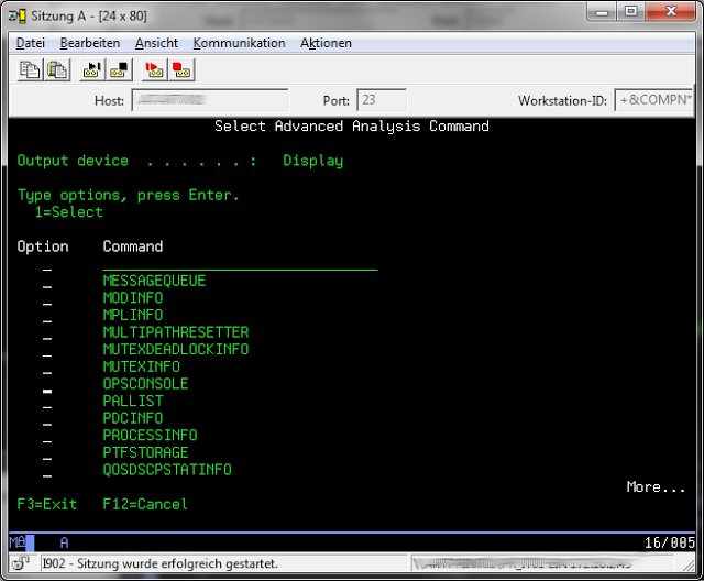 Select Otion 14 "Advanced Analysis" and page down in the List of the Macros till you see the "OPCONSOLE" macro.