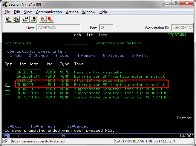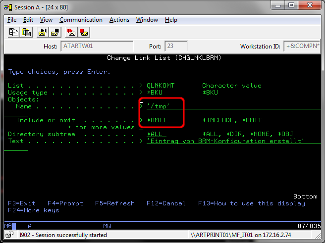 But sometimes you want to omit some directories from the backup because otherwise the backup will block applications which have open files in this directories. An example for such directories are the /tmp or the log directories of the web servers. The option to omit directories from "*LINK" backups is a little bit hidden. There is a special Link List in BRMS called "QLNKOMT". Every omit entry in this list will be omitted in "*LINK" backups.