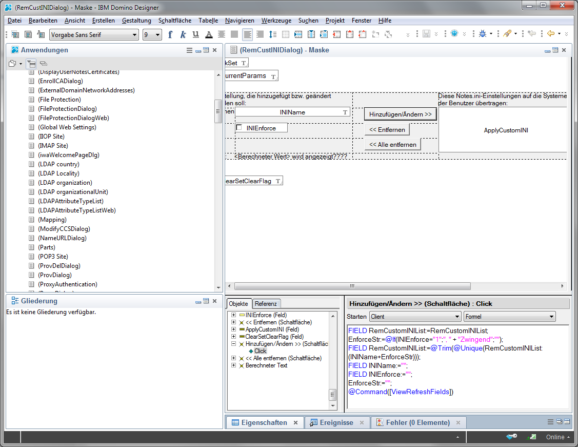 In einem meiner letzten Posts habe ich gezeigt, wie man den "Masthead" von Notes 9 über eine Desktoppolicy beeinflussen kann. Leider sind aber die Dialoge des Domino Adressbuchs in der deutschen und französischen Version von Domino leider kaputt übersetzt worden. Es wurde nämlich der englische Begriff "enforce" mehrmals irrtümlich ins Deutsche ("Zwingend") übersetzt. Dies bewirkt, dass zwingende Policyeinstellungen nicht richtig übernommen werden. Glücklicherweise kann dieses Problem aber relativ einfach mit dem Domino Designer behoben werden.