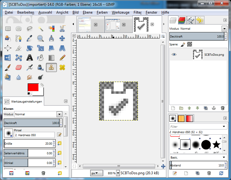 Create an icon for your new custom action in the Masthead in your favorite image editor. The image should be 16x16 pixel and exported as a PNG. My recommendation is to use Gimp for this task.