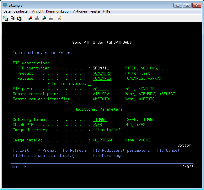 In older releases the use of the green screen "SNDPTFORD" command was not a workaround because it was limited to download only small PTF's and not big PTF groups. But recently i noticed that this command was enhanced so that it is able to download PTF's to optical images. I will show you how easy this is and i am pretty sure that you will never ever use Fix Central again.