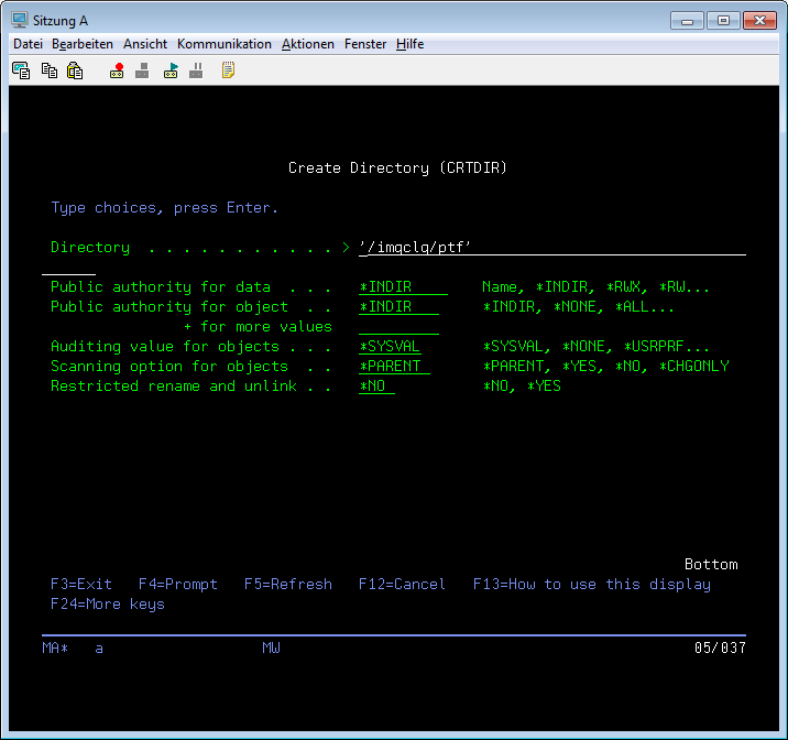 First step is to create a directory where you want to store the images for the downloaded PTF images with "CRTDIR DIR('/imgclg/ptf')" . I have chosen "imgclg/ptf" for this.