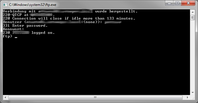Start the Windows FTP command line client with "FTP System" Be sure to replace "System" with the name of your system ;-)