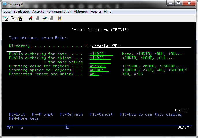 Change the current directory to your IBM i destination directory "/imgclg/v7r1" with "cd /imgclg/v7r1"
