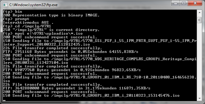 After the upload finished you can leave the ftp client with "quit" All images are now in the directory of your IBM i and you can add this images to an image catalog. If you need help have a look at my tutorial "Fill an IBM i image catalog with images with one API call"