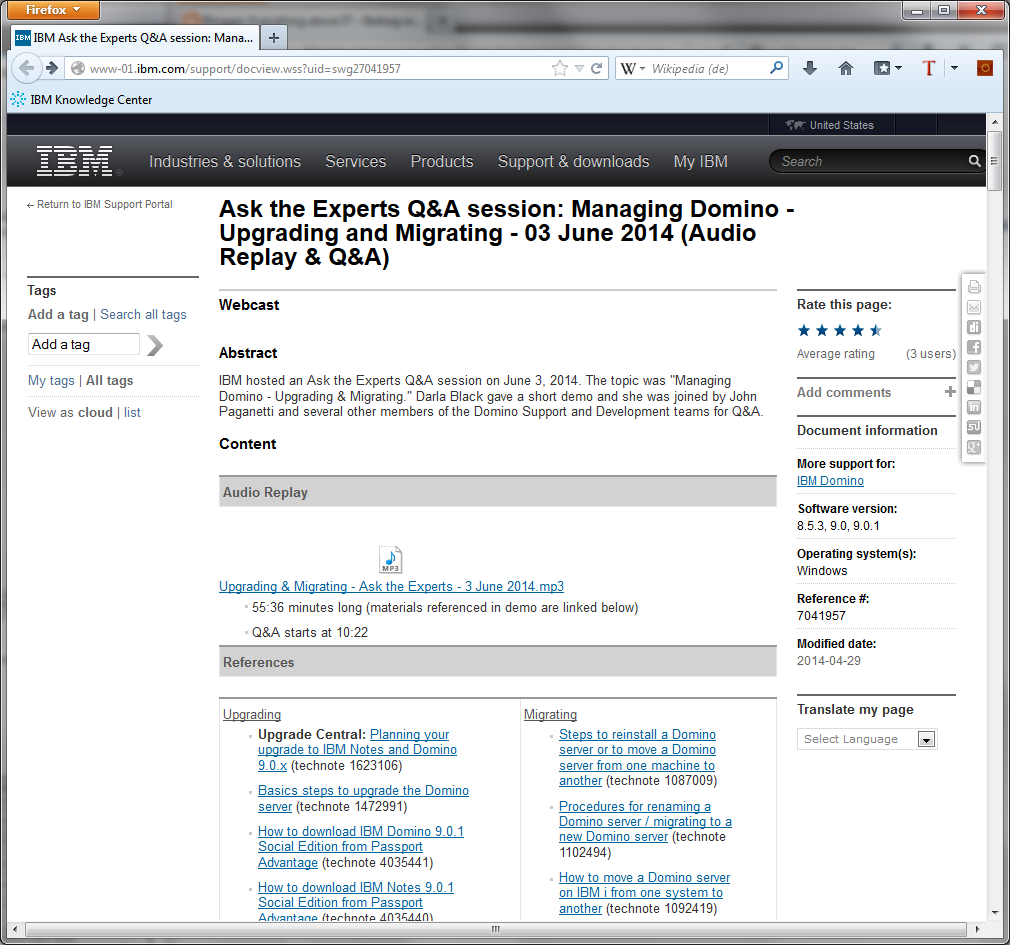 IBM hosted and Ask the Experts Q&A session about Domino Upgrading and Migration on June 3, 2014. The Audio replay and the transcript of the FAQ is now available on developer works. Very Interesting questions and answers. If you upgrade your Domino infrastructure in the near future i strongly recommend to listen to this session.