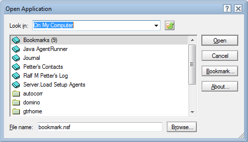 Der Öffnen Dialog eine sehr of verwendete Funktion sieht immer noch weitgehend wie in Notes 7 aus. Die Fensterdekorationen und auch der Hinweis für die Vergrösserung des Fensters sind für Windows 7 vollkommen untypisch. Die Icons passen überhaupt nicht zum Rest des Clients. Die Knöpfe sehen ziemlich nach Windows 98 aus.