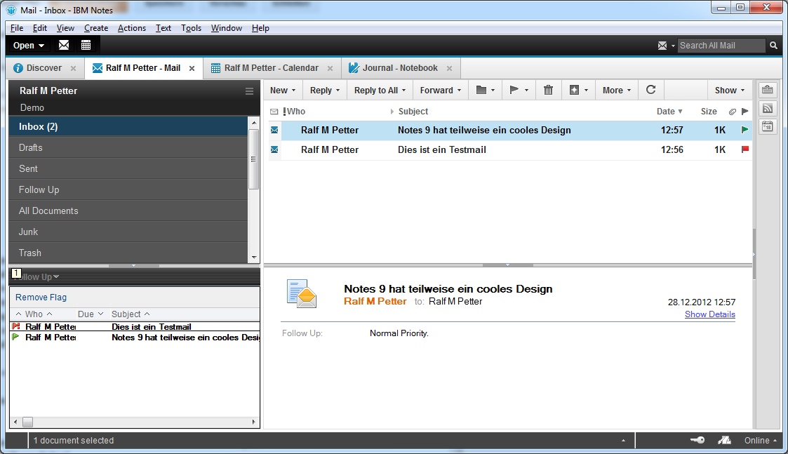 Ebenfalls unverständlich die schon unter Notes 8 wie ein Fremdkörper wirkende Follow Up Ansicht, die bei uns in der Firma sehr gerne verwendet wird, wurde nicht aktualisiert. Wie viel Aufwand wäre das wohl gewesen (hochgerechnet mit testen und übersetzen vielleicht 1 Mannwoche).