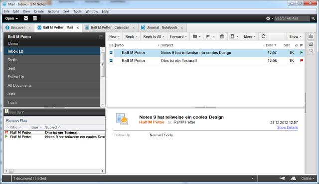 Endlich über die Weihnachtsfeiertage bin ich auch mal dazu gekommen mir die Beta von Notes 9 Social Edition im Detail anzusehen. Vorweg schicken möchte ich, dass ich Notes seit über 12 Jahren sowohl als Anwender als auch als Administrator und auch als Entwickler verwendet habe und auch nach wie vor verwende. Ich stehe Notes prinzipiell sehr positiv gegenüber und war auch immer ein Verfechter des Standardclients auch wenn die ersten Versionen des Standardclients sehr buggy waren. Ich war aber speziell ab der 8.5.1 der Meinung, dass Notes auf einen sehr guten Weg war. Die neuen Features wurden immer stabiler und auch die Performance wurde langsam besser. Als ich dann gehört habe, dass bei Notes 8.5.4 bzw. jetzt Notes 9 nocheinmal Verbesserungen am UI gemacht würden, war ich begeistert.