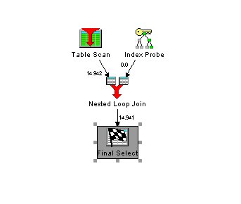 Die Auftragsdatei wird mittels Tablescan komplett durchgelesen. Für jeden Auftrag wird ein Index Zugriff durchgeführt und mit den Auftragen zusammengejoint. Dann muss aber noch für jeden Kunden ein extra Zugriff auf den Satz in der Kunden Tabelle erfolgen, um den Namen zu lesen. In unserer Beispieldatenbank sind weil wir 14.941 Aufträge haben dafür genau so viele Zugriffe notwendig.