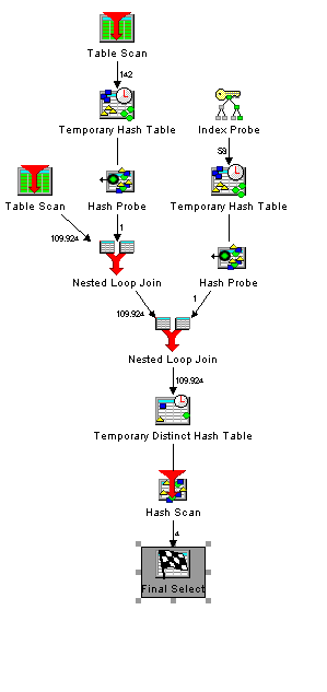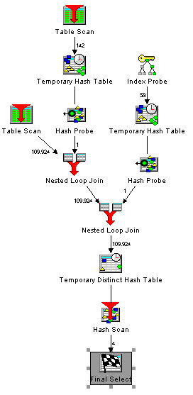 Every little icon represents one process step in your query. Some of the icons are pretty clear. Everyone knows what a table scan or and index probe means. But what about the others? The online help of Visual explain is not really helpfull, because there are only very short descriptions of every icon. But fortunatly there is a detailed description with examples of every access method the query optimizer can choose to process your sql statements in the IBM i information center. If you prefer to read this informations on paper you can download a PDF from http://pic.dhe.ibm.com/infocenter/iseries/v7r1m0/topic/rzajq/rzajq.pdf