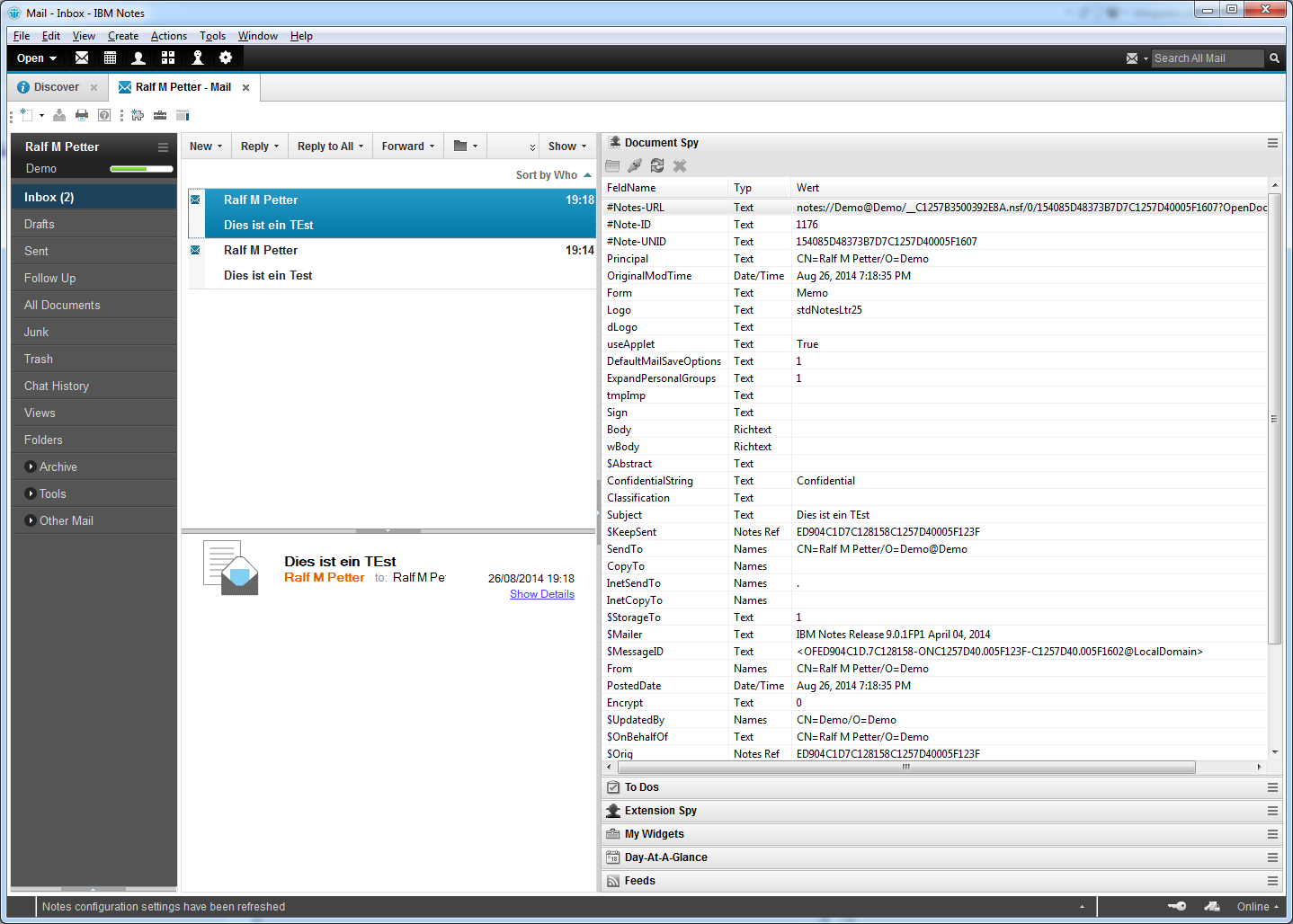 When i should choose one thing, that i really hate about Notes i am sure that i will choose the property box with the document items. Not only that the box is not resizable and really very small on todays big screen, the biggest problem is that you can not switch to Designer and still see the items of the document in the notes client.
