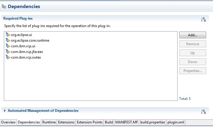 Als erstes muss man die Notes API (com.ibm.notes.java.api und com.ibm.java.ui) dem Plugin als Abhängigkeit hinzufügen.