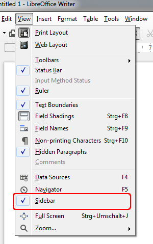 One of my favorite features in Lotus Symphony was the sidebar. On today's wide screens a classic toolbar or the ribbons in Microsoft Office on top of the document does not make sense, especially in a Text processor where the documents are in portrait format. A sidebar as in symphony uses the screen space much more efficiently. The sad thing is that IBM has abandoned Lotus Symphony, but fortunately IBM has open sourced their changes to the Openoffice codebase. So i can use my favorite feature in Libreoffice again.