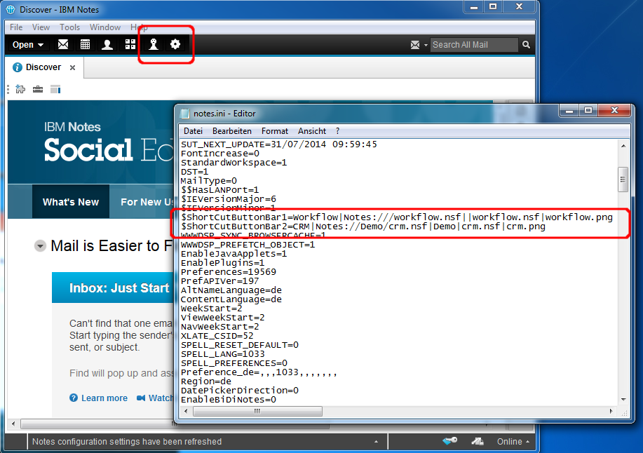 In one of my last posts (Add Custom Actions to the Masthead (Shortcut Buttonbar) in Notes 9) i have shown to you how to add your own Shortcuts to the Masthead with an eclipse extension. To do this you need basic java skills and an eclipse installation properly configured for Notes plugin development. I have got many replies that many Notes developers/admins do not have the prerequisites to follow my tutorial and so i have promised to provide a new tutorial without the need for java or eclipse skills.