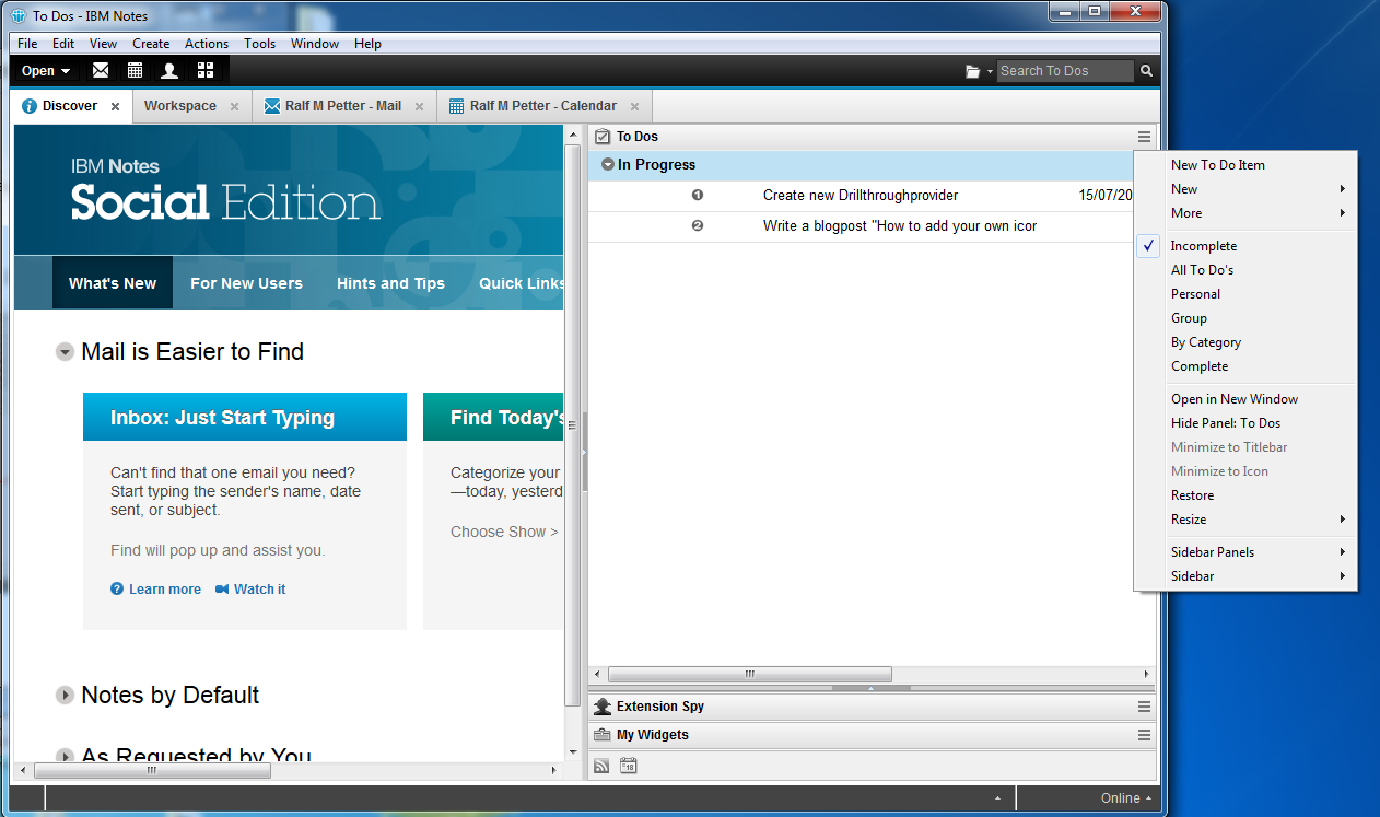 The Sidebar was one of the great features which came with the Standard client in Version 8. One of the first uses of the sidebar was the "Day at a glance" calendar view. But what some of our users misses was a sidebar view for the "To Dos" similiar to the "Day at a glance" view. There are some workarounds for this like creating a view widget with the widget wizard. But the old C++ views looks not very sexy in the sidebar.