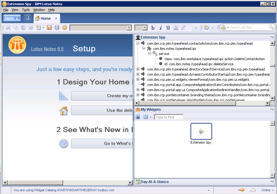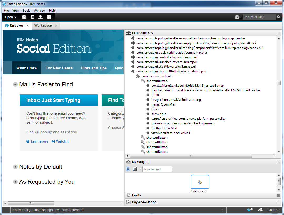 The Extension Spy i presented in one of my latest posts had an dependency on Notes 9.0.1 so that it will not work in versions prior 9.0.1. I have removed this dependency and now the plugin should work in all Notes 8.5.x and 9.0.1 standard clients. If you had problems with the installation please remove the widget and reinstall the new version. I have tested it with 8.5.3 and 9.0.1. Please leave a comment, if you have still problems with the new version on your client.