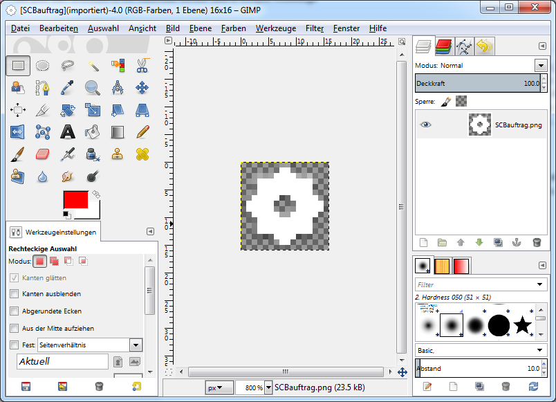 Then create an icon for your shortcut in the size 16x16 pixel and with a transparent background. The colours should be similar to the other Masthead icons so that you get a consistent design. Save the icon as a PNG.