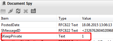 Search for the field "$KeepPrivate" in the Document Spy table and double click it.