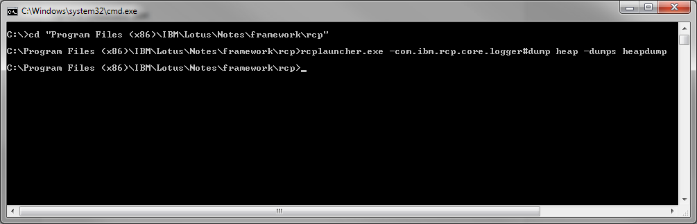 - Enter the command "rcplauncher.exe -com.ibm.rcp.core.logger#dump heap -dumps heapdump"