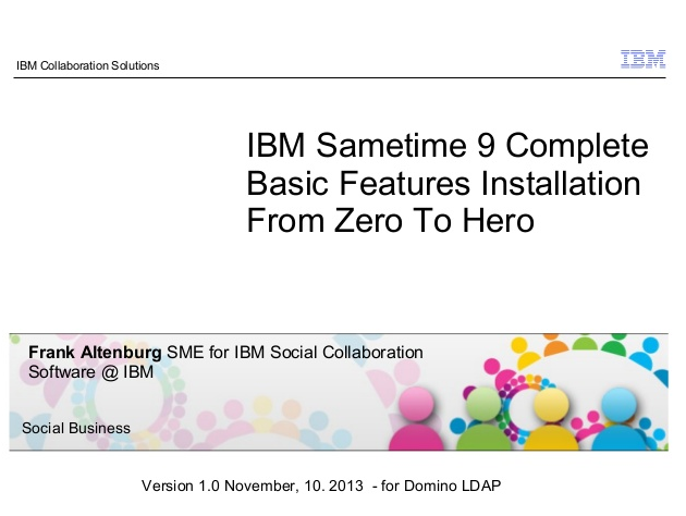 Frank Altenburg has posted the Presentation IBM Sametime 9 Complete - Basic Features Installation - From Zero To Hero on Slideshare. Watch this presentation if you want to know what's new in Sametime 9 and how to build a basic Sametime 9 infrastructure. A big thank you to Mr. Altenburg for posting this valueable ressource.