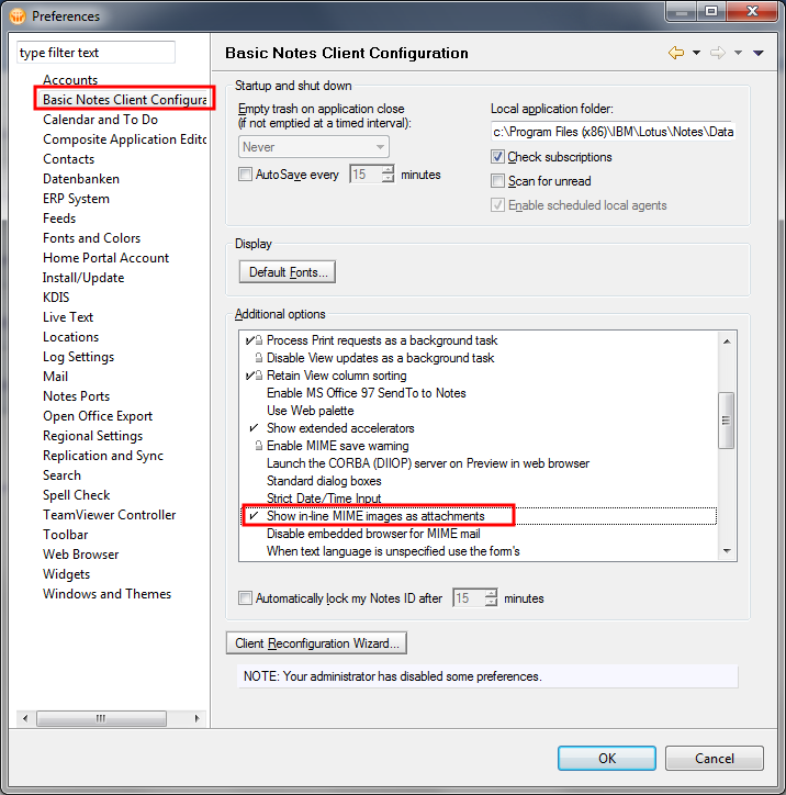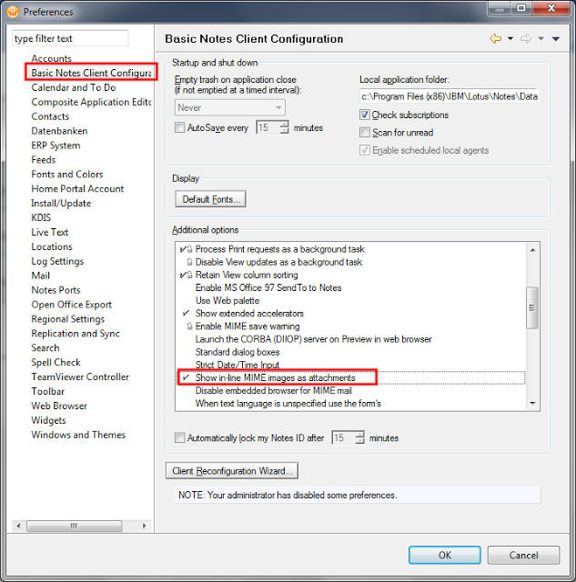 The option in the ui sets the variable "ShowMIMEImagesAsAttachments=1" in your Notes.ini. So when you want do deploy this useful option to all your notes users, you can set the "ShowMIMEImagesAsAttachments=1" variable in the notes.ini section of your Desktop policy.