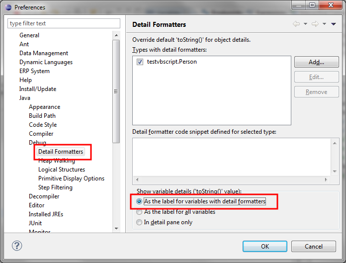 Detail Formatter erleichtern das Debuggen in Eclipse