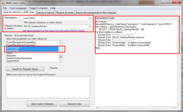 Set colItems = objWMIService.ExecQuery("SELECT * FROM Win32_DesktopMonitor",,48)