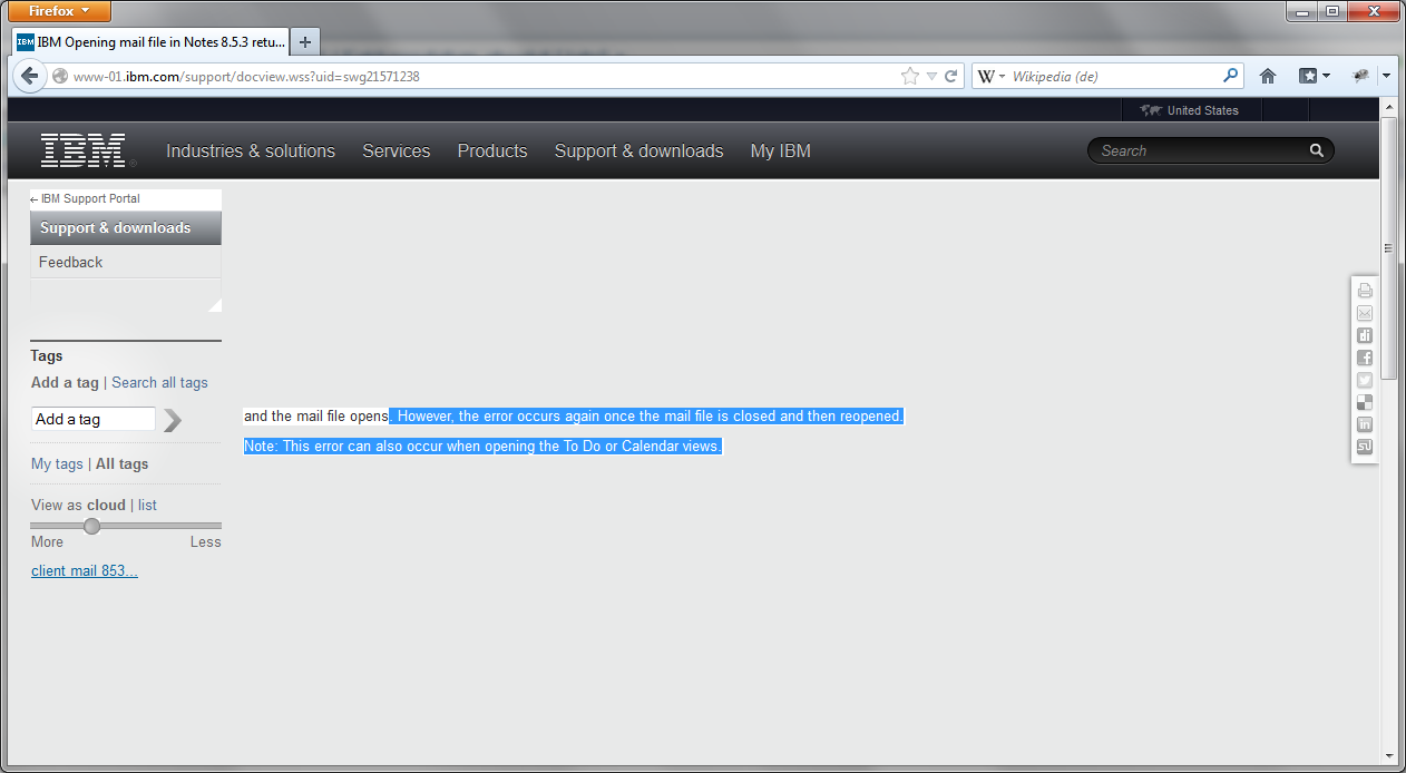 Newer Firefox (e.g. the newest ESR) versions can not render the IBM support website correctly. Many parts of the website are invisible and will show only sporadic on scrolling.