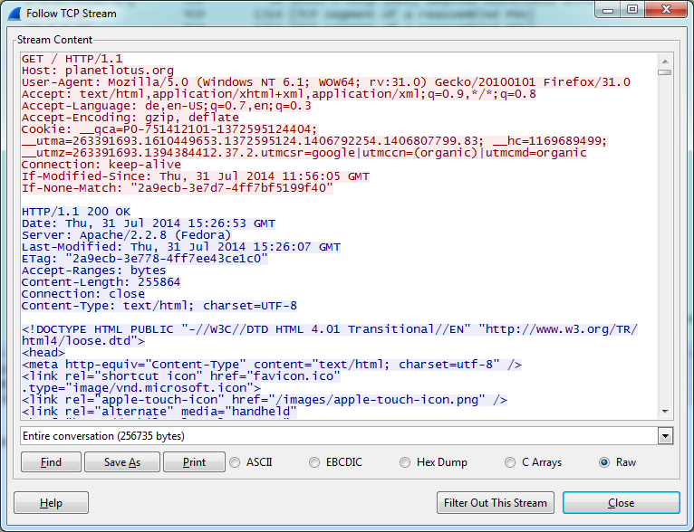 Another tip for beginners of wireshark is to use the Follow TCP or UDP Stream Context Menu. When you select this option on a packet you get the whole communication to which this packet belongs.
